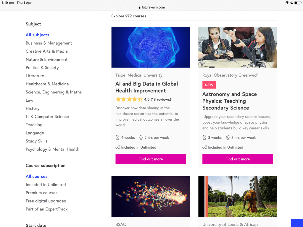 Work. How has it been for you? Has their period made you reassess your goals? Is it time to explore new careers? Or if you’re retired is it time to get back to learning. There are so many interesting (and free) courses available on a huge range of subjects. https://www.futurelearn.com/